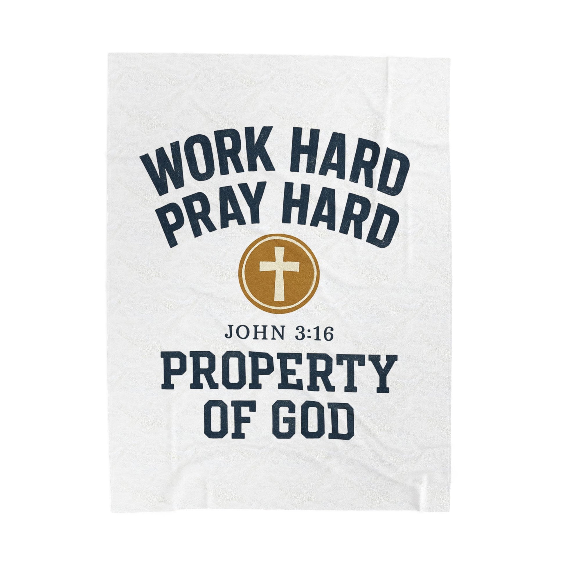 Christian Inspirational Velveteen Plush Blanket - "Work Hard Pray Hard"