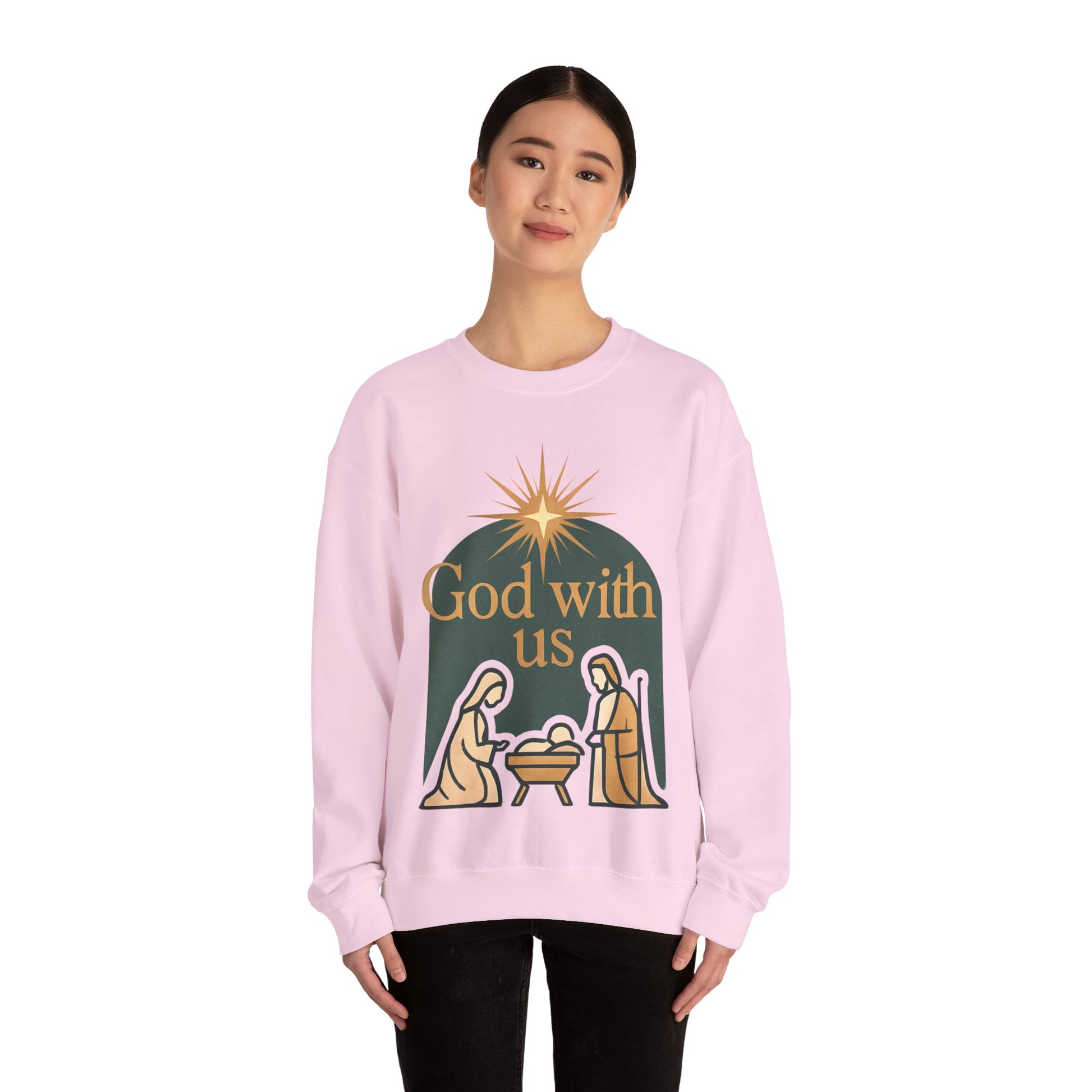 "God with Us" - Cozy Christmas Sweatshirt, Holiday Spirit Wear, Religious Gift, Unisex Crewneck