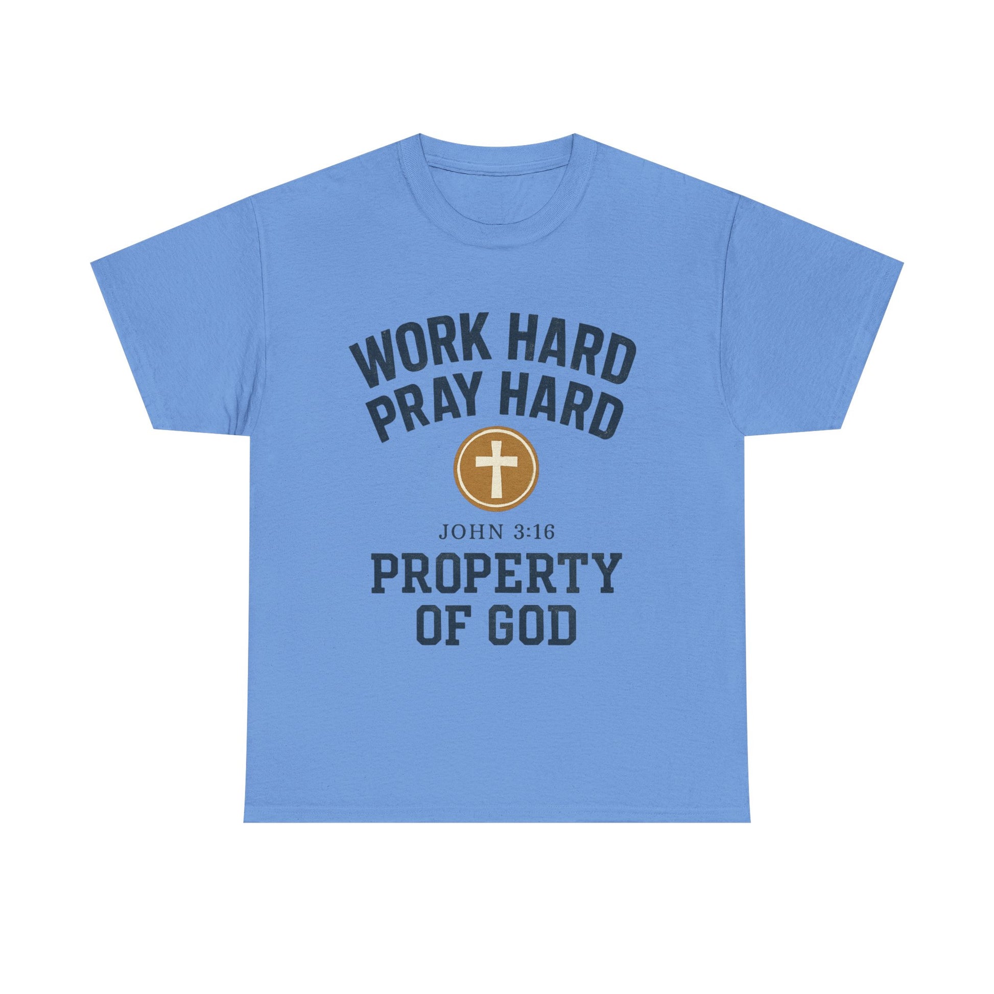 Introducing a timeless Unisex Heavy Cotton Tee that combines comfort with a bold statement. This tee radiates an inspiring vibe, perfect for expressing your faith or motivation in everyday life. Whether you're at a casual gathering or a church event, this shirt lets you showcase your values with style. Ideal for adults who appreciate both comfort and durability, it's perfect for occasions like family gatherings, Christian holidays, or casual outings. Let this tee be a reminder to work hard and pray hard, making it a meaningful gift for friends and family alike.