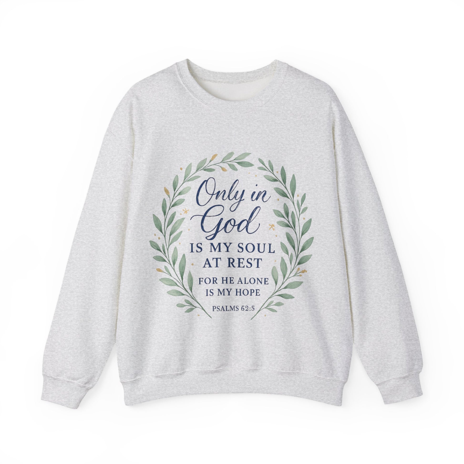 "Only in God is my soul at rest" Psalms 62:5 Inspirational God Crewneck Sweatshirt