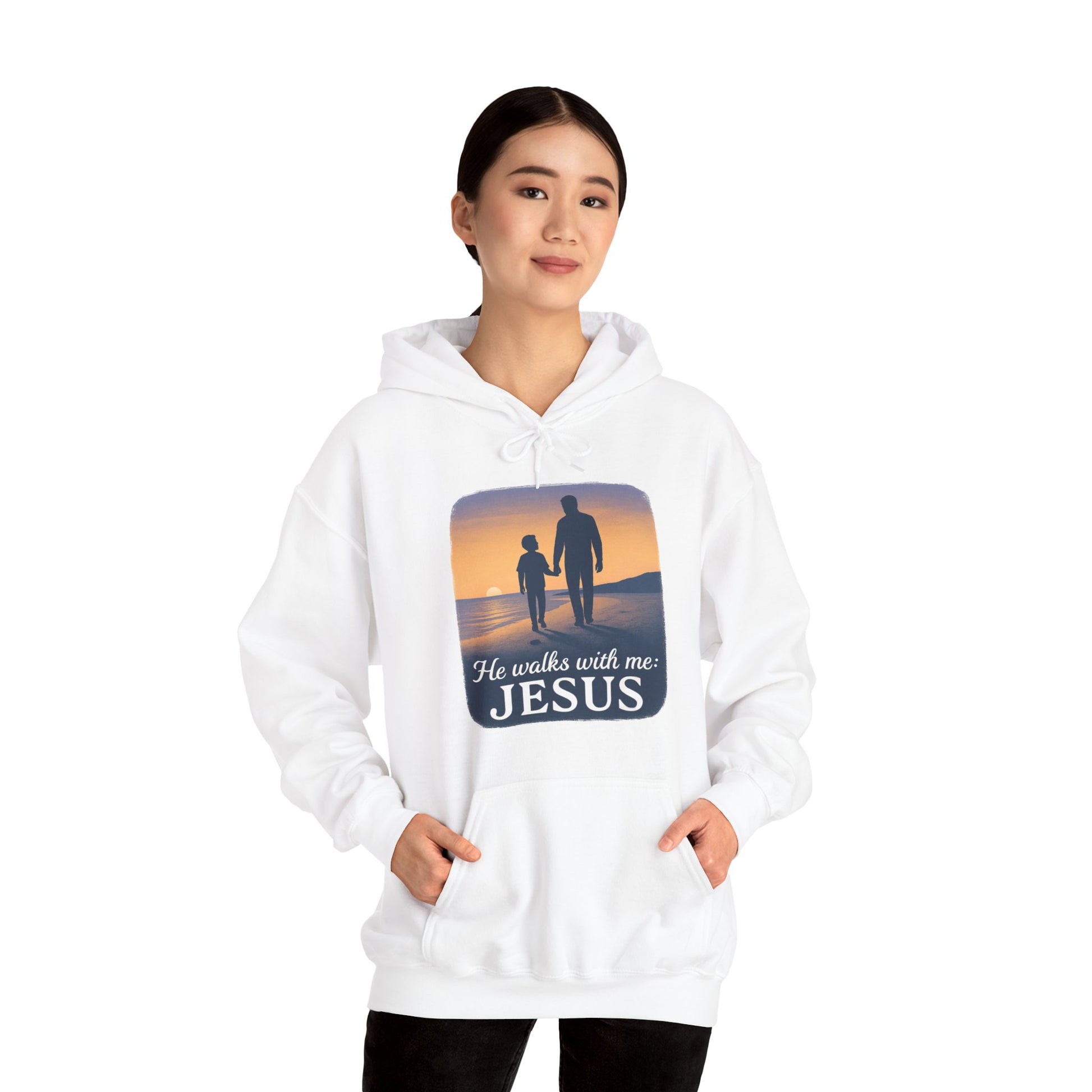 He Walks With Me Hooded Sweatshirt, Comfort Wear, Faith Apparel, Inspirational Clothing